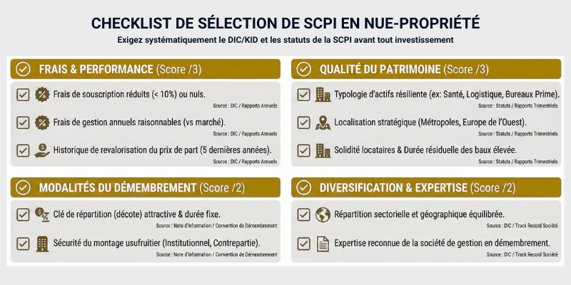 Toutes les SCPI ne se valent pas en nue-propriété, loin de là. J’analyse pour vous la qualité du patrimoine, les frais, la contrepartie usufruitière et le potentiel de revalorisation.